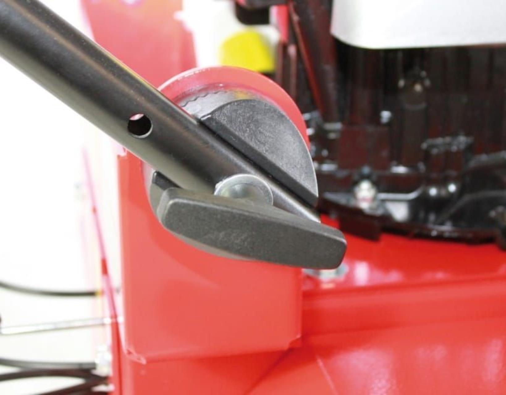 Die perfekt ausbalancierten Maschinen bieten zudem ausgezeichnetes Handling. Der Antrieb erfolgt über vollgummibereifte, unempfindliche Räder mit Stollenprofil. Besonders hervorzuheben ist die ergonomische Bedienung sowie der verstellbare Holm.