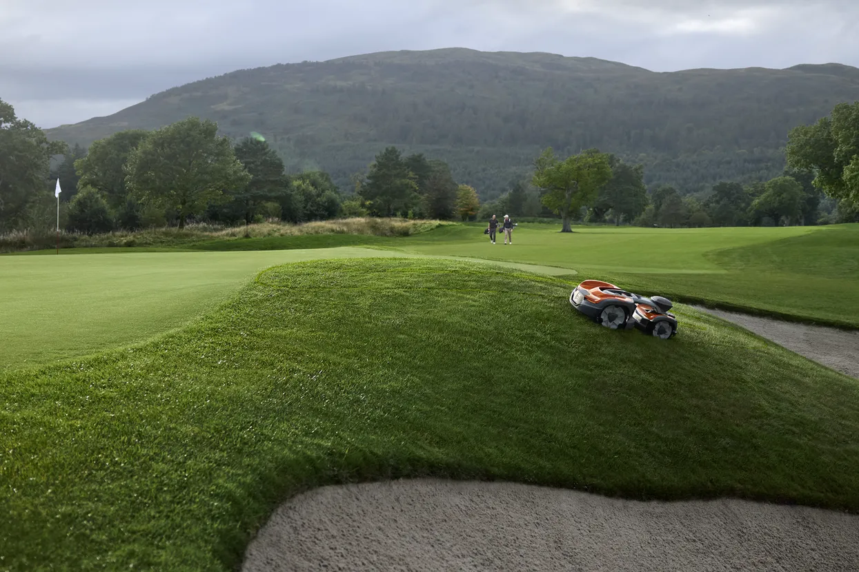 Der Mäher eignet sich für Firmen- und Gemeindegrundstücke aber auch für umliegende Bereiche auf Golf- und Sportplätzen und bietet eine einfache Interaktion und Überwachung durch Husqvarna Fleet Services.