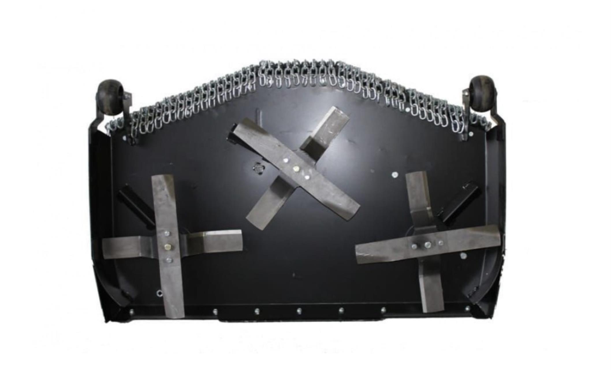Das sehr stabil ausgelegte Mähwerk ist für die extensive sowie für die intensive Pflege bestens geeignet. Egal, ob Hochgras oder regelmäßig gemähte Flächen, durch drei speziell geformte Kreuzmesser ist eine sehr gute Zerkleinerung und breitflächige Verteilung des Mähgutes gewährleistet.